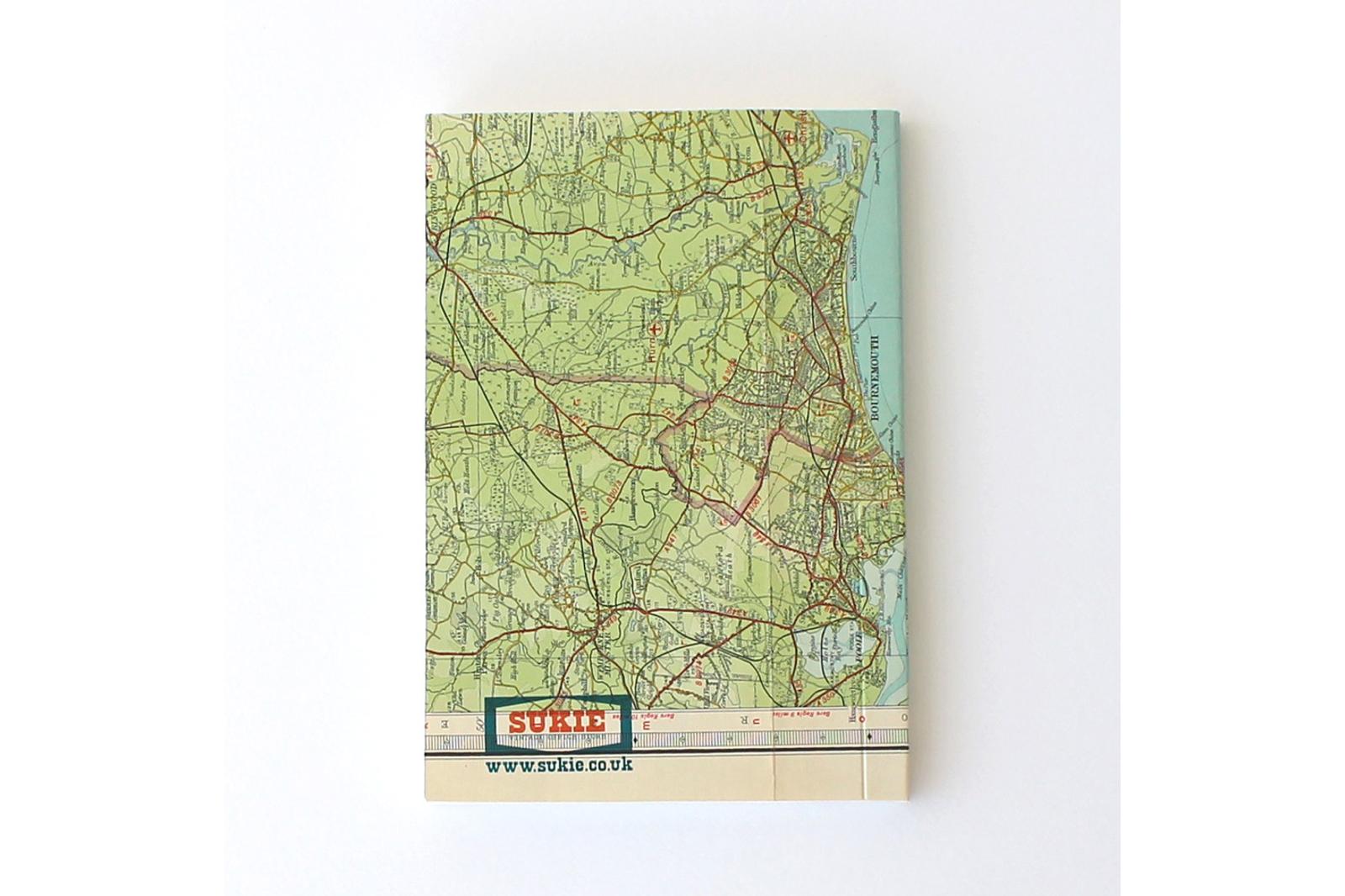 Dieses Notizbuch hat ein Cover aus recycelten alten Landkarten mit Leinenrücken. Dadurch sieht jedes Buch anders aus.