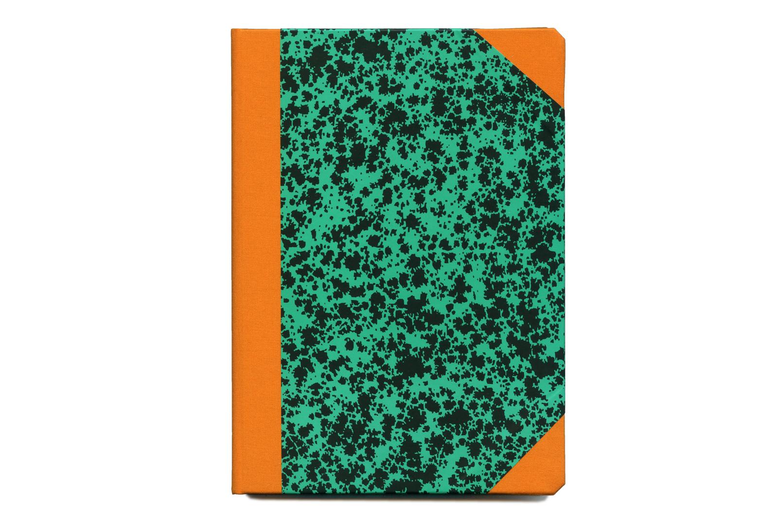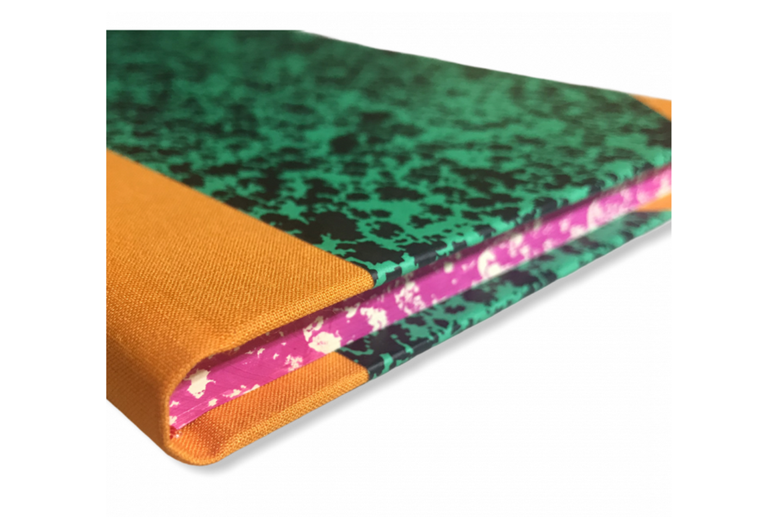 - Sturdy notebook with orange linen bound back and corners