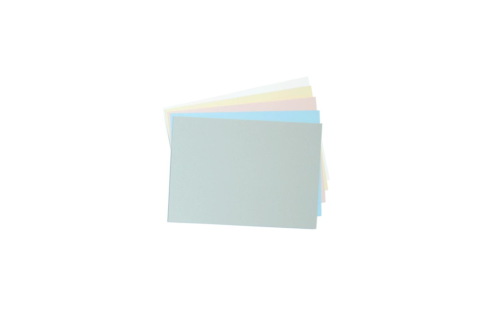 Rivoli Karten sind in fünf Farben verfügbar: weiß, gelblich weiß, hellgrau, hellblau, rosa.